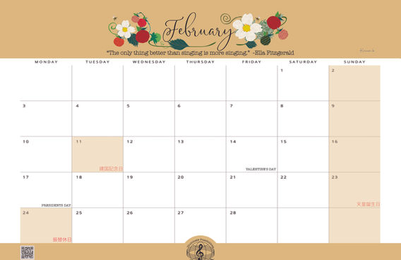 ー日本とアメリカ両国のホリデーも記載されており、レッスンで習う海外の季節の歌と合わせて楽しめる!